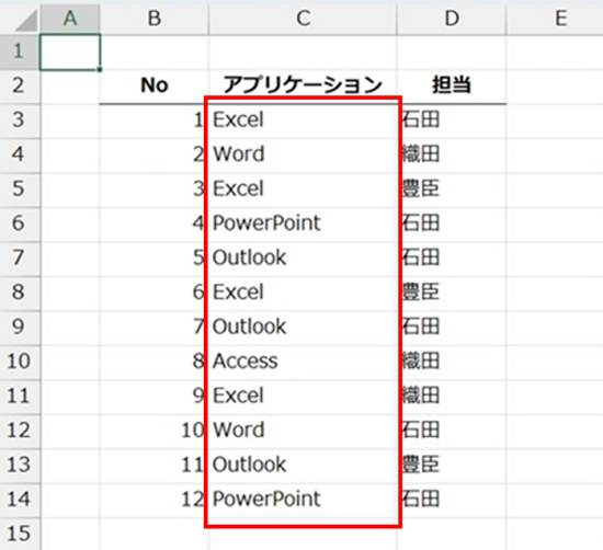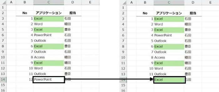 この表 ↓ の [アプリケーション] の列が「Excel」だったら、