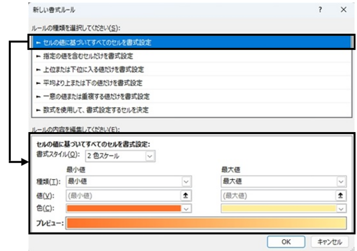 ということで、[セルの強調表示ルール] などから作成できないルールは、[新しいルール] や [その他のルール] から [新しいルール] ダイアログ ボックスを表示して作成します。