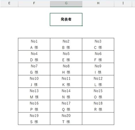 今回の例だと、教室などの座席をイメージしていて、後ろのほうから見た場合の座席表ですね。 発表者側からみるレイアウトで印刷したい場合の工夫については別途書きます。