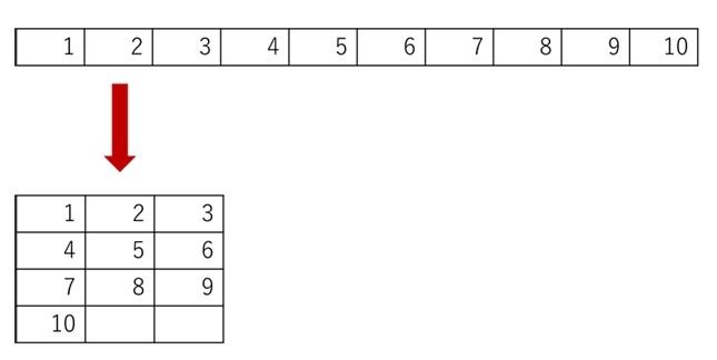 =WRAPROWS (ベクトル , 各行の最大列数 , 空白セルがあった場合に設定する値)